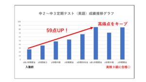 Aさんは前回に続き、今回のテストも大幅に成績が伸びました!!おめでとう(^^)/